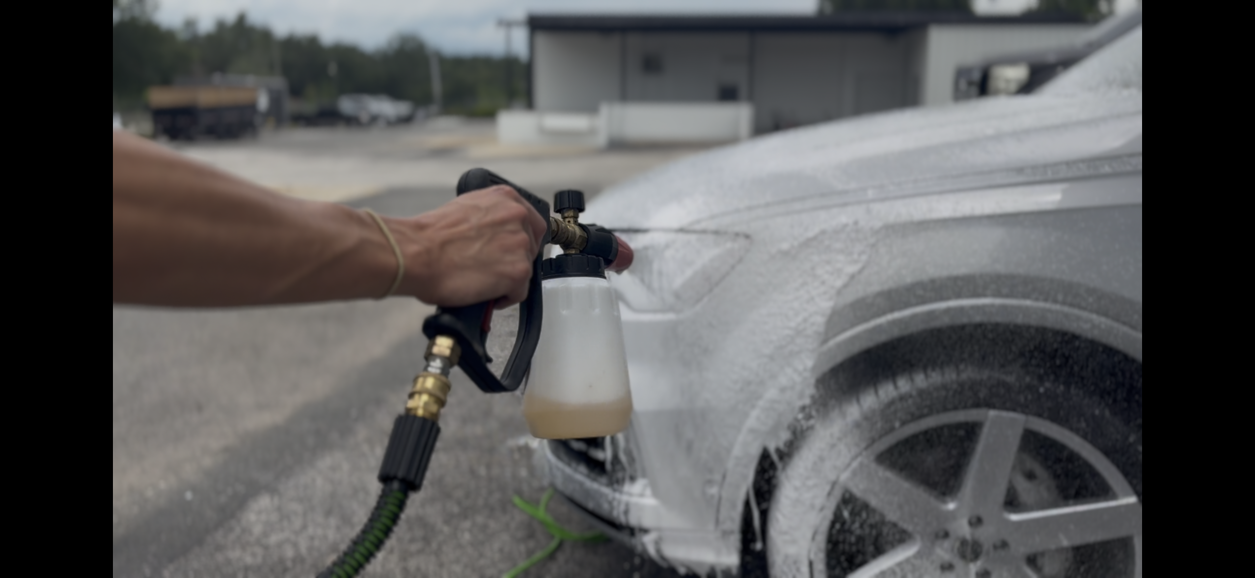 Exterior: Foam Wash, Tire/Wheel clean, Fender-well clean, tire shine, basic spray wax